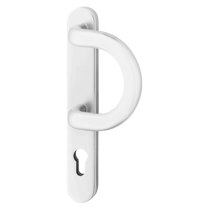 Garniture monobloc avec poignée coudée fixe extérieure sur plaques largeur 36mm, 3 piliers.
