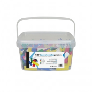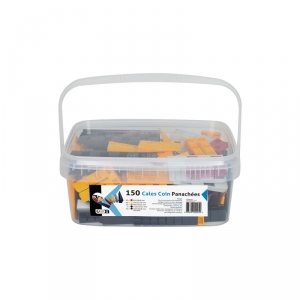 Seau rectangulaire contenant un assortiment de cales fourchette.