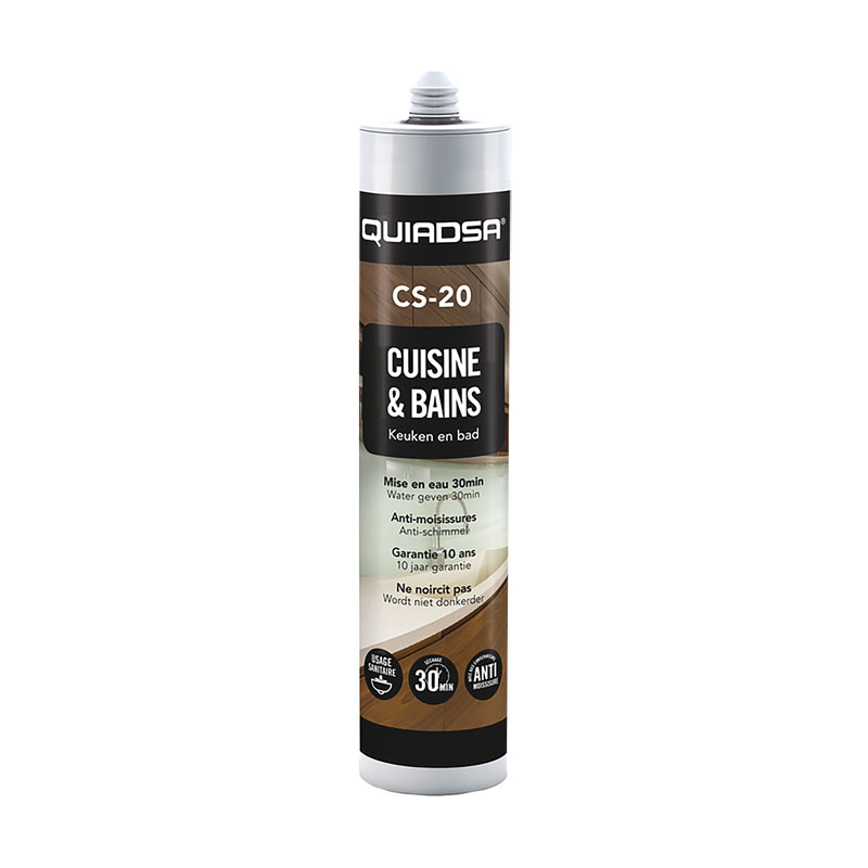 Mastic de silicone acétique spécial joint salle de bains, contours de baignoires, lavabos et plan de travail de cuisine anti-moisissure, ne noircit pas jointage rapide remise en eau 30 min.
